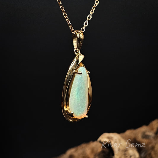 Coober Pedy Crystal Shell Opal 14K Pendant [#1676]