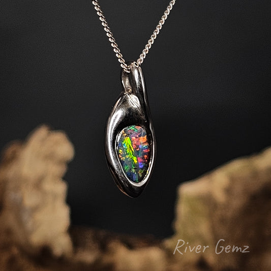 Lightning Ridge Black Opal in Sterling Silver Pendant [#2092]