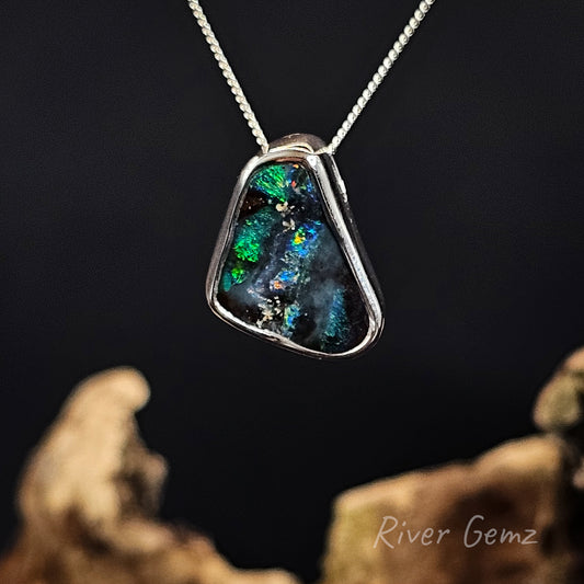 Opalton Boulder Opal in Sterling Silver Pendant [#510]
