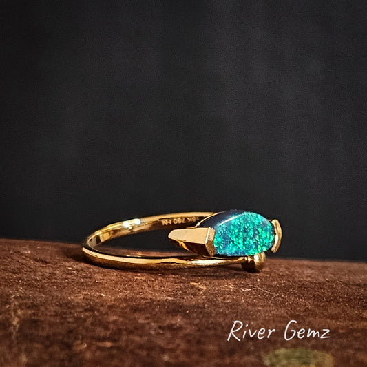 Lightning Ridge Black Opal in 18K Ring [#126]