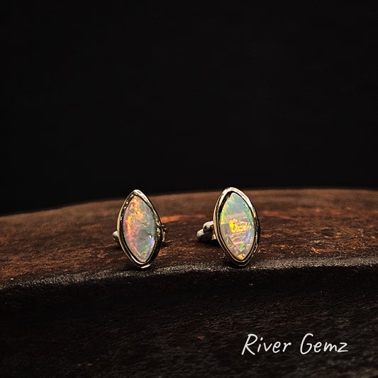 Coober Pedy Crystal Opals in 14K Studs [#3149]