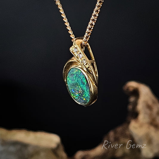 Lightning Ridge Black Opal & Diamonds in 18K Pendant [#3093]