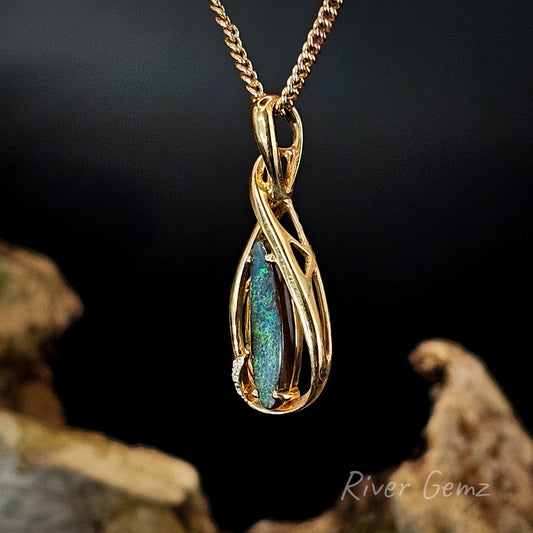 Australian Black Opal & Gold Nugget in 18K Pendant [#367]